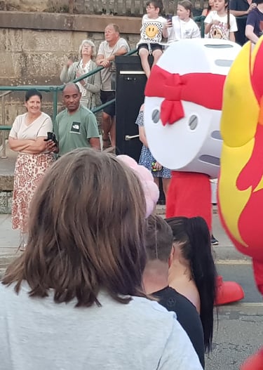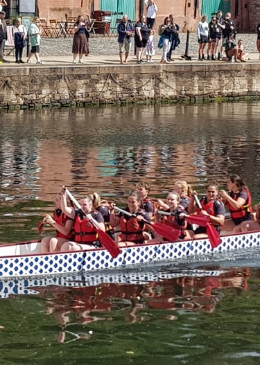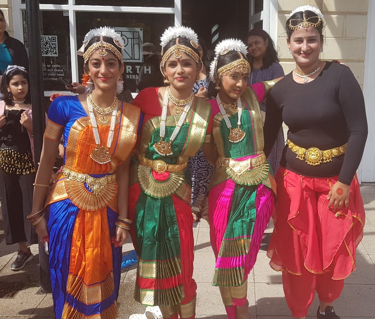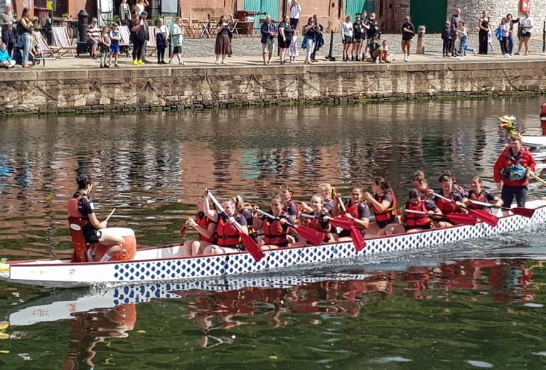 A pleasant afternoon down on Exeter Quay included Dragon Boat Racing and a troupe of Indian Dancing Girls. As you can see - their costumes were very colourful.