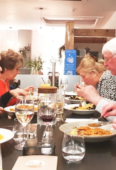 Wednesday nights are our regular meet up night over a meal. We have two venues we use on the 2nd and 4th Wednesdays of the month. The other Wednesdays are chosen by the host's for the evening. Members not wanting to eat can join us after 7:30pm for informal conversation.